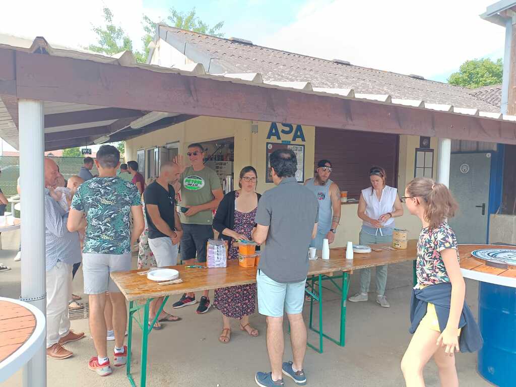 Dimanche 3 juillet. Barbecue de fin de saison ! Nous étions plus de 80 ! La journée s'est très bien déroulée. Un grand bravo aux membres du bureau du club qui ont organisé et géré cela d'une main de maître. Le repas était au top. Un grand merci à Nicolas, Président du club de foot, qui nous a permis de vivre cette journée au stade avec tout ce que cela a facilité, et qui nous a beaucoup aidés. Merci à Camille et Philippe Lelard (Birette et Caboche, Montipouret, un de nos précieux partenaire) : ils ont apporté leur machine à granités, en ayant préparé un Mojito (sans alcool) qui a régalé tous les convives ! Merci également à la mairie d'Ardentes et à la CAVA grâce à qui nous avons eu nos barnum, nos tables, nos bancs,...
